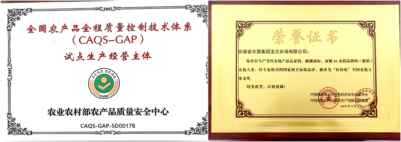 该项目作为“互联网+”现代农业的实践,成功入选全国“互联网+”现代农业百佳实践案例。生产的“开心大米”已经通过有机认证,并荣获“好食味”全国有机大米金奖、第十二届中国国际有机食品博览会“优秀产品奖”。龙亢农场被评为“全国农产品全程质量体系(CAQS-GAP)试点生产经营主体单位”。