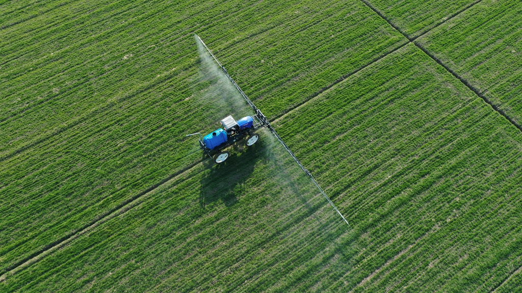 龙亢农场七分场正在进行喷药化除作业 (李 峰 摄)