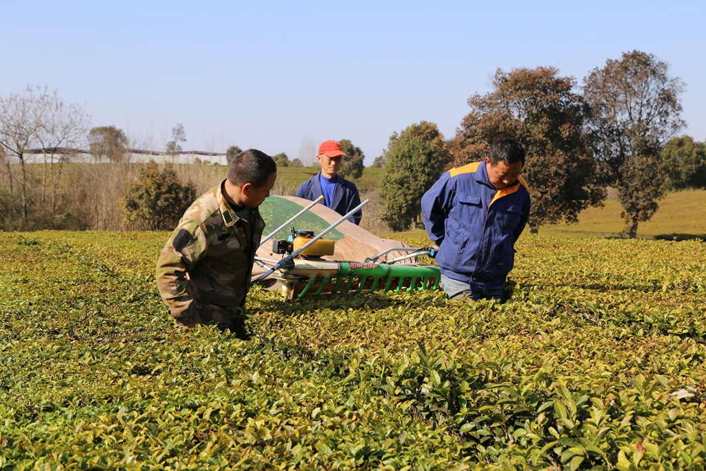 下图:敬亭山茶场茶农为茶树修剪枝叶(张志超 摄)