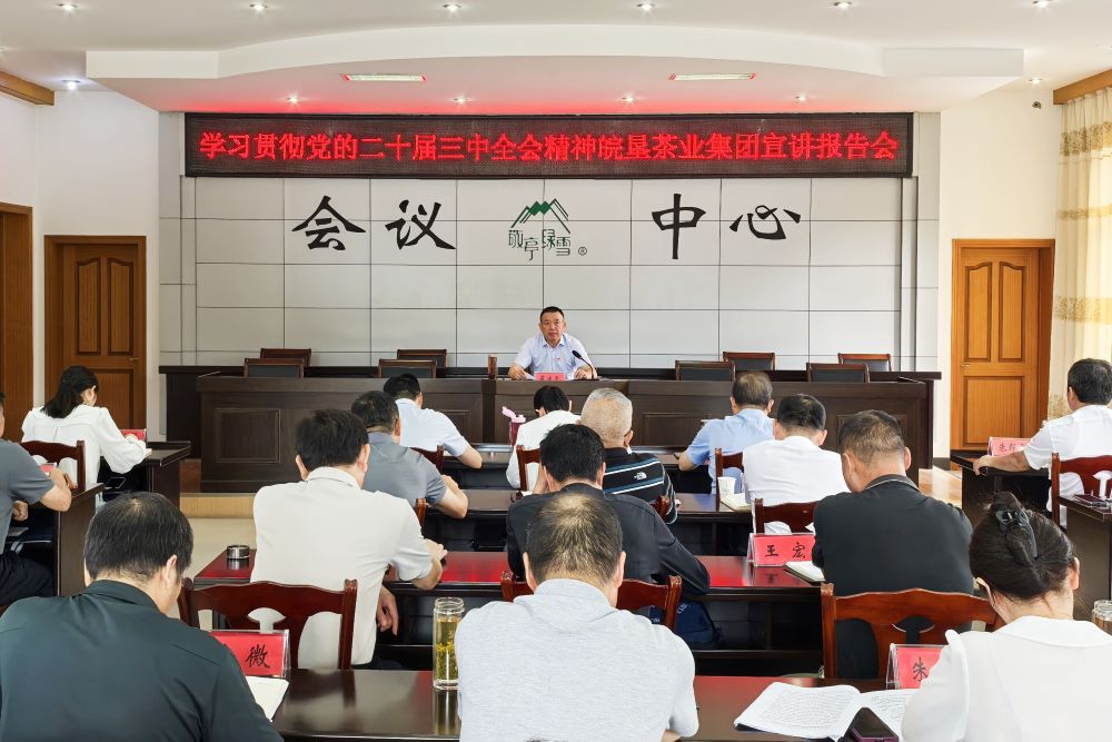 董建平从深刻领会和把握党的二十届三中全会的重大意义、深入学习领会习近平总书记在全会上的重要讲话精神、全面准确把握《决定》确定的重大改革举措、以钉钉子精神抓好全会精神贯彻落实等四个方面深入解读了党的二十届三中全会精神,同时结合茶业集团改革发展实际,提出了具体的贯彻落实举措和工作要求。