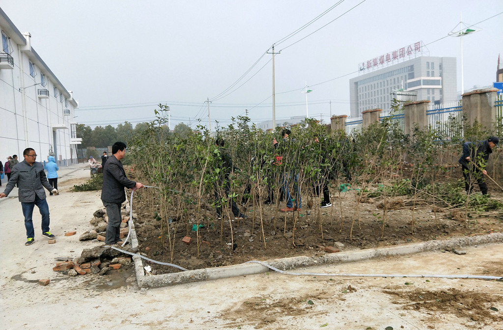 植树现场一片繁忙景象,公司领导带头干,党员干部争相干,大家分工合作,挥锹铲土、扶苗填坑、踏土夯苗,合力栽下一株株树苗。经过两天的劳动,共种红叶石楠和桂花树苗共二万余株。一株株新栽种的树苗迎风挺立,呈现出一片生机盎然的景象。(王晨龙)