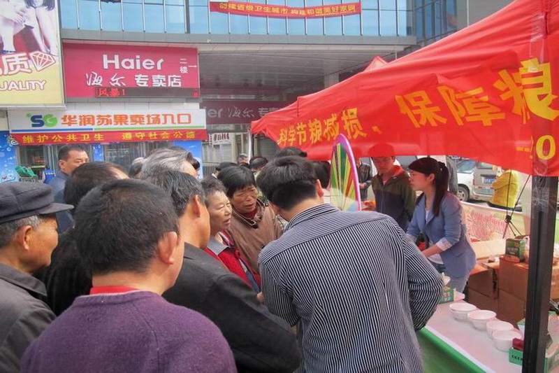 519,天长市粮食局2013年“科技活动周”在天丰广场启动,活动主题为科学节粮减损,保障粮食安全。安徽农垦倮倮米业有限公司不失时机地开展了企业宣传和大米促销。