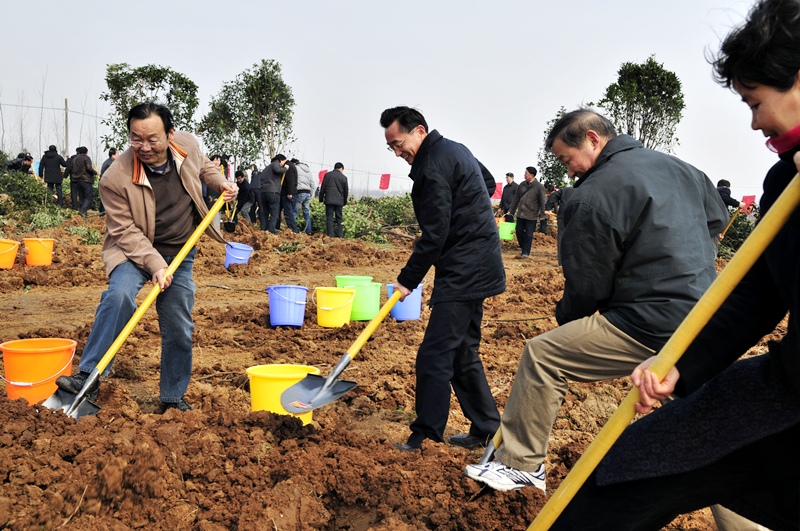 草长莺飞,春回大地。312日植树节这天,安徽农垦集团在位于合肥市蜀山区南岗镇的安徽皖垦生物科技高效农业示范园内举行了大规模植树活动。活动由王占廷副总经理主持,李卓民总经理致辞,田文俊董事长宣布植树活动正式开始。省农垦集团领导、合肥市副市长江洪、省林业厅副巡视员唐丽影以及省农委、蜀山区、皖垦种业、皖垦茶业、黄山大厦、通和房产有关领导和集团机关全体员工100余人参加了义务植树造林活动。