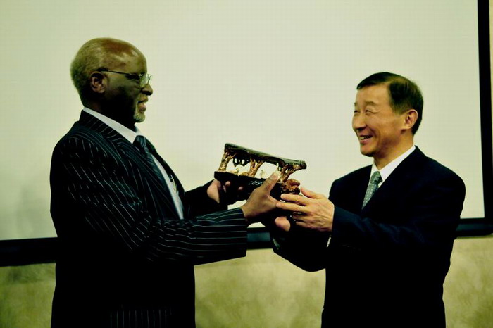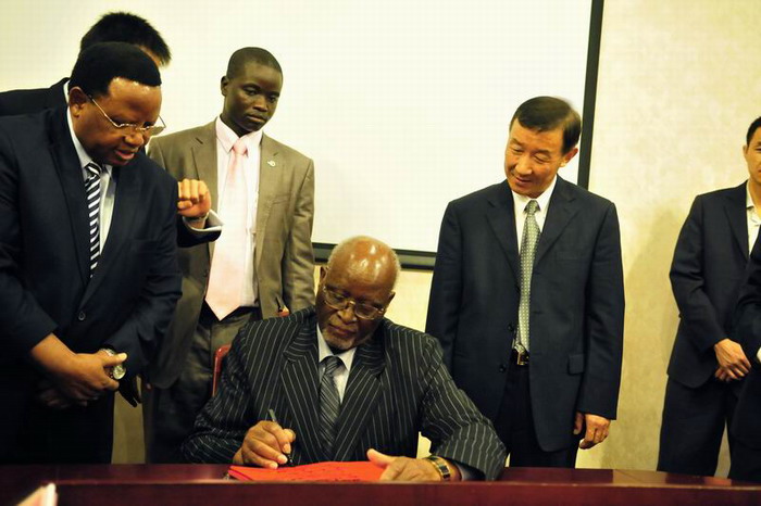 会谈中,津国代表团观看了农垦集团的视频简介,双方在坦诚友好的气氛中进行了交流探讨。田文俊介绍了安徽农垦在津农业合作开发项目的进展情况。约翰·恩科莫副总统及相关官员对双方开展项目合作表示欢迎与赞赏,认为津国农业资源丰富、潜力很大,希望今后双方进一步加强农业及相关产业的合作,实现互利共赢。会谈结束时,约翰·恩科莫副总统欣然题词,与田文俊董事长互赠礼品并集体合影留念。
