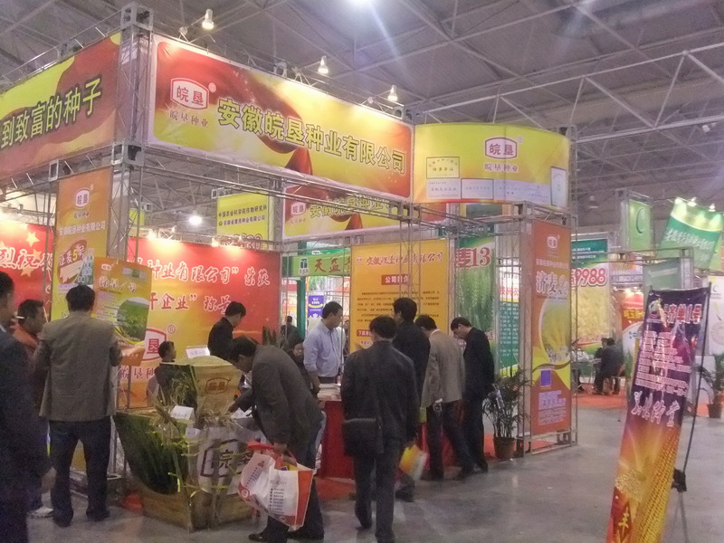 11月3日,在中国合肥农资信息交流暨产品交易会上,安徽农垦大圹圩农场展出的稻麦新品种主要有扬麦18号、皖垦糯1号、武育稻系列等稻麦新品种(系),尤其是皖垦糯1号和扬麦18号两个新品种吸引了各地经销商长时间驻足,在展台前,他们仔细观看种子外形,详细询问特征特性,皖垦种业天长分公司工作人员耐心细致地一一作答。在农资双交会现场,各地10多个经销商热切表达了签订区域代理合同的意向。