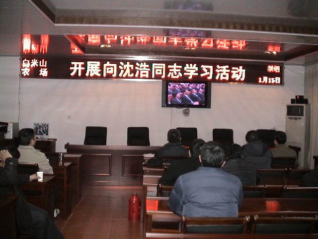 1月15日下午,安徽农垦白米山农场党委中心学习组举行扩大会议,利用视频系统,认真收看中央宣传部举办的沈浩先进事迹报告会全场内容,对沈浩同志的工作作风、忘我精神由衷敬佩。