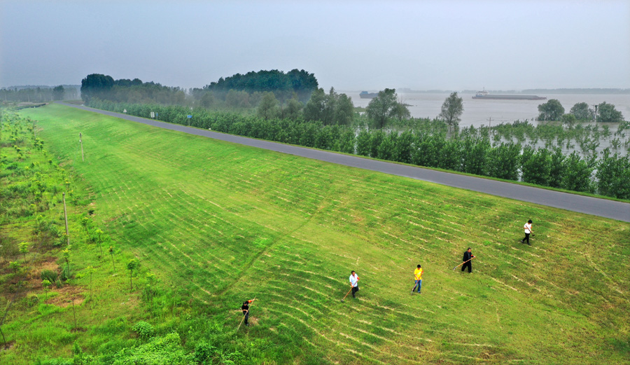 青草湖分场位于南漪湖湖港圩区,青草湖属于长江支流水阳江水系,有朱桥联圩和五星联圩两个责任段共2.2公里,圩内青草湖分场有1.5万亩土地和3000人口。1999年长江流域遭遇特大洪灾,当时的青草湖农场(后并入敬亭山茶场成为分场)全军覆没,无一幸免。今年汛情再次告急,7月14日,青草湖水位达到13.39米,超保证水位0.39米;7月17日,已超过保证水位1.05米。皖垦茶业集团、敬亭山茶场和青草湖分场建立三级联防机制,每天有100多人日夜坚守湖堤,不间断巡堤查险,同时密关注切险工险段,作好决战准备。