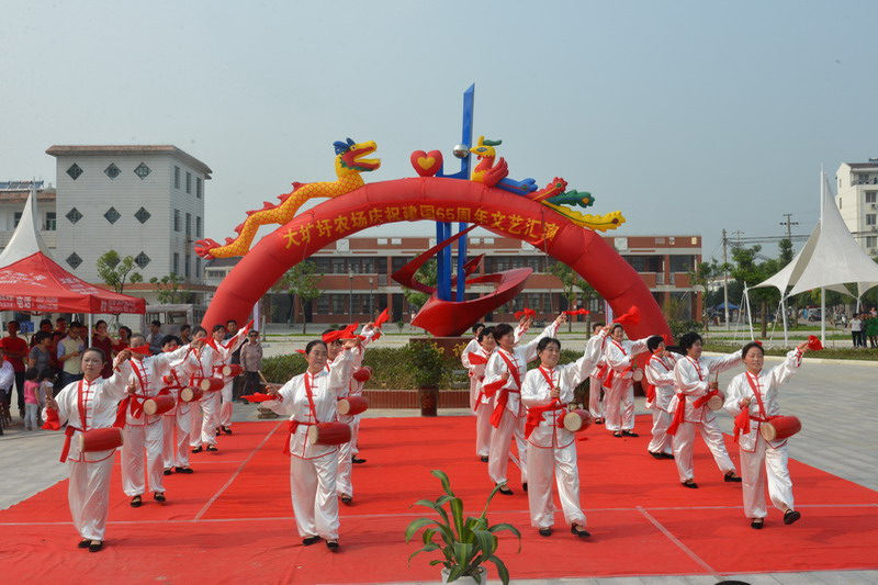 928,大圹圩农场庆祝建国65周年文艺汇演在新落成的社区文化广场火热举办,全场3个社区组织近百人参演了17个文艺节目,全场干部职工、社区居民数百人观看了演出