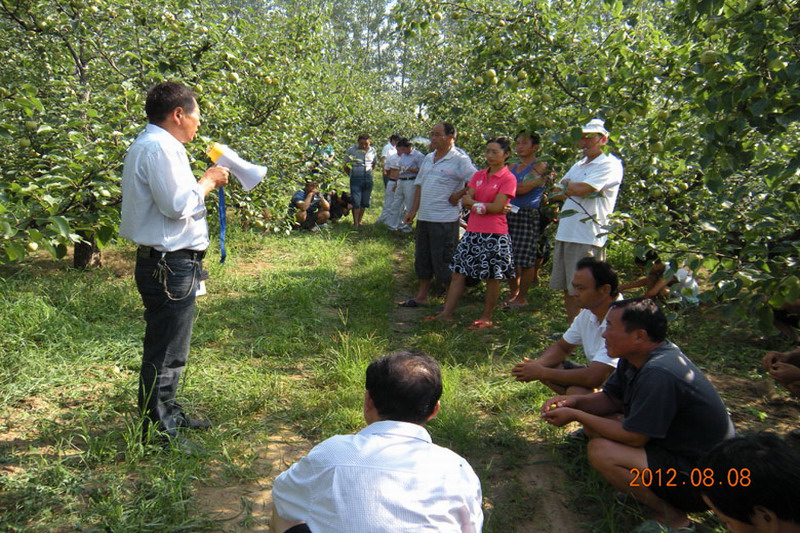 砀山果园场万余亩酥梨也即将进入采收旺季。入夏以来,该场多措并举加强酥梨标准化生产。一是坚持周例会制度。全部安排在果园现场举行,确定一周生产管理主题,总结上周工作成效,查找存在问题,提出解决办法,确保生产工作的针对性、时效性和统一性;二是落实生产技术措施。严格按五统一管理要求,做到有布置、有落实、有检查、有考核,统一规定生产技术措施,统一要求完成时限,统一按标准检查验收,并跟踪督促承租大户及特殊种植户及时有效地落实到位,在田间地头解决生产技术问题;三是抓好抗旱等工作。根据今年夏季雨水偏少和果品夏季生长需水量较大的实际,及时动员部署抗旱工作,充分运用各类抗旱设备,为职工抗旱提供技术指导和服务,有效地缓解了旱情,为今年丰产丰收奠定了基础。